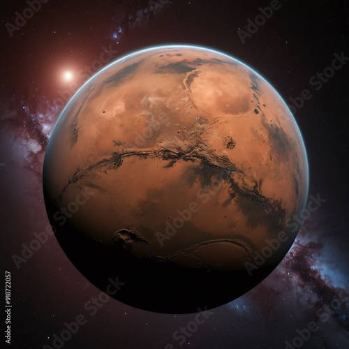 © vian, Fototapeta premium 3D Planet Mars isolated in dark stary array galaxy solar system red planet