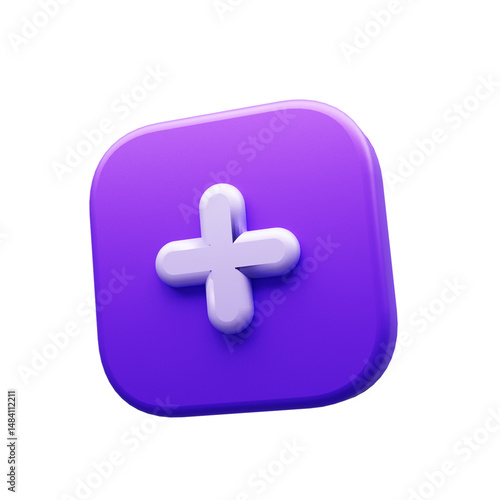 Fototapeta premium 3D Plus Icon – Add Button Symbol in Purple UI Style