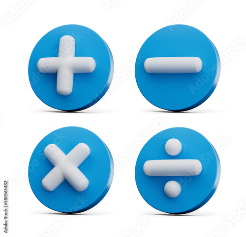 Fototapeta premium 3d Plus, Minus, Multiply And Divide Signs With Blue Buttons On White...