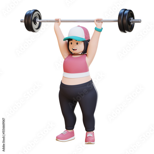 © M Novian F, Obraz premium 3D Plus Size Overweight girl doing Overhead Press