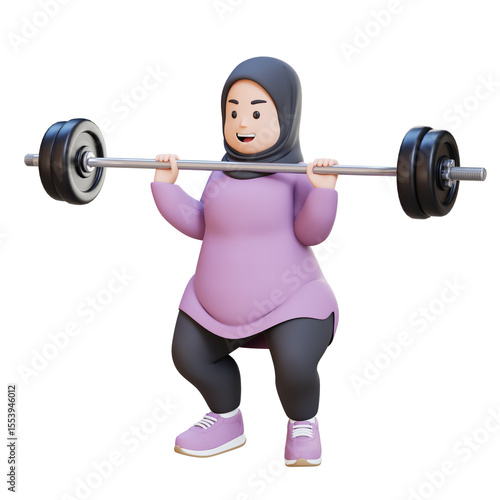 © M Novian F, Obraz premium 3D Plus Size Overweight muslim woman workout with barbell