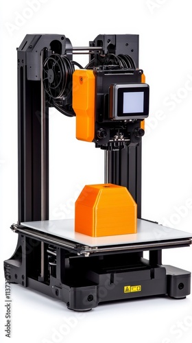 Fototapeta premium 3D Printer Manufacturing Orange Object Technology Innovation Modern Machine