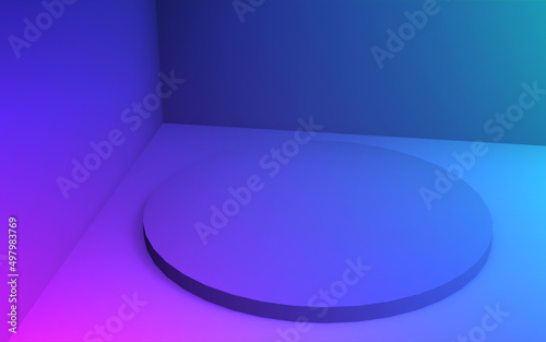 © Mama pig, Obraz premium 3d purple blue neon light cylinder podium minimal studio gradient dark colors background. Abstract 3d geometric shape object illustration render. Display for nightclub party and technology product.
