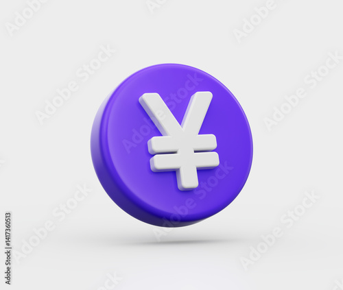 © Aqsa, Fototapeta premium 3D Purple coin with a white Yen symbol, representing Japanese currency and finance. 3d illustration