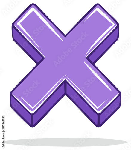 Fototapeta premium 3D purple X symbol with a shadow and white outline, graphic design