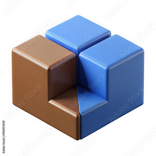 Fototapeta premium 3D puzzle block illustration with interlocking cubes, isolated on white...