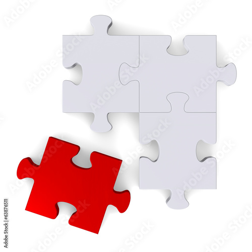 © inimalGraphic, Obraz premium 3d puzzle with red missing piece on white, top view