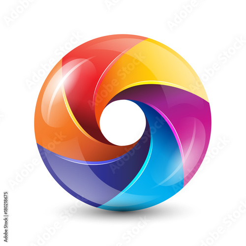 © vladars, Fototapeta premium 3D rainbow circle colorful logo with glossy blades