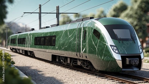 © Debby Studio, Fototapeta premium 3D realistic a smooth modern train with the green marble texture color