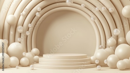 Obraz premium 3D Realistic Empty Beige Podium Stand