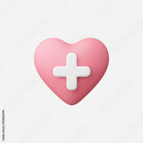 Obraz premium 3d Realistic Heart Plus icon vector Illustration