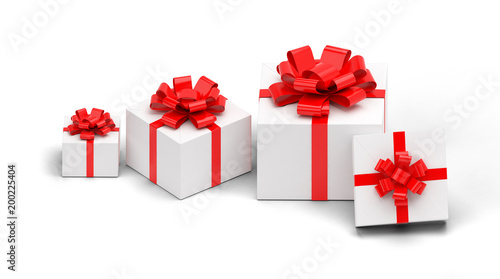 Obraz premium 3d realistic set of colorful gift boxes with bows and ribbons.