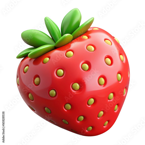 © Amin, Obraz premium 3d realistic strawberry with green leaves