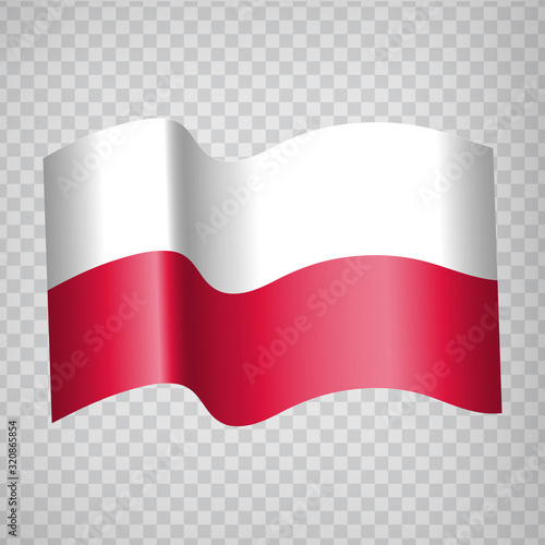 © katarinanh, Naklejka premium 3D Realistic waving Flag of Poland on transparent background. National Flag Republic of Poland for your web site design, app, UI. Europe. EPS10.