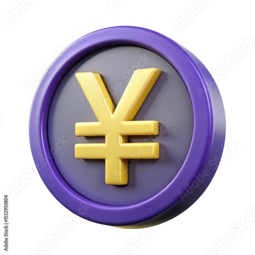 © 3D render png, Obraz premium 3d realistic yen currency symbol icon isolated on transparent background