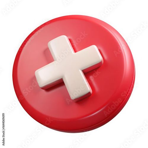 Obraz premium 3d red button with white plus symbol isolated on transparent background