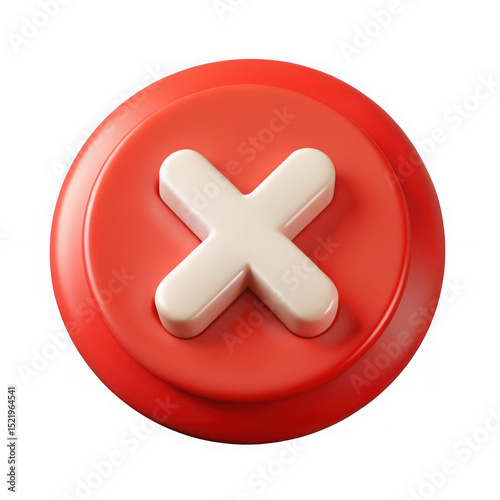Obraz premium 3d red button with white x icon isolated on transparent background