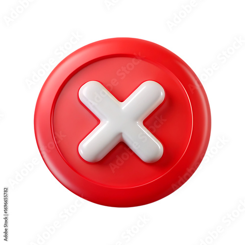 Fototapeta premium 3d red circle with white cross icon signifying error or close action...