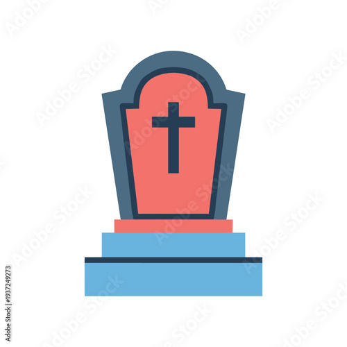 © FatemaStock, Fototapeta premium 3D red cross gravestone memorial icon isolated on blue background
