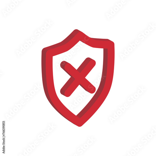 Obraz premium 3d red cross in shield icon. Error message. Security alert. Wrong answer,...