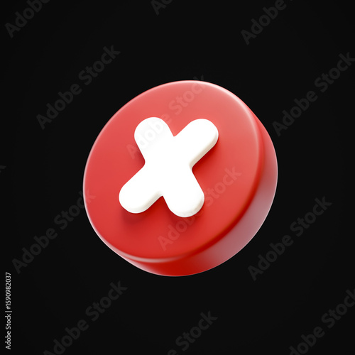 © Ardhika, Obraz premium 3D red cross mark icon isolated on black background. Cross mark button. Online Support center. 3D render illustration