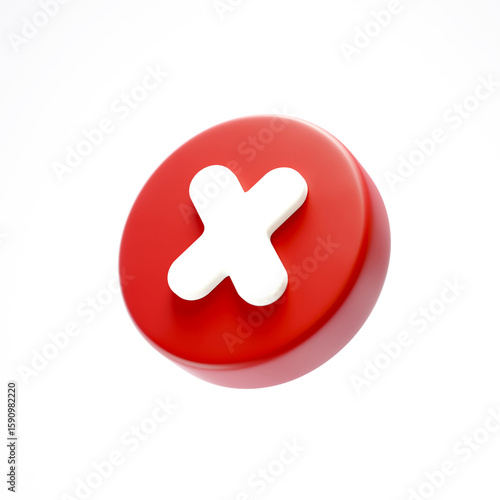 Obraz premium 3D red cross mark icon isolated on white background. Cross mark button....