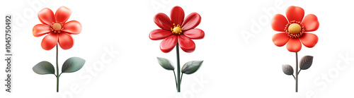 © BarakaCreative, Fototapeta premium 3D red flowers in bloom isolated transparent background perfect for botanical or nature-themed illustrations