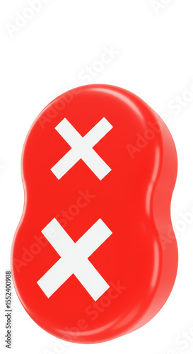Fototapeta premium 3D Red Glossy Object with White Crosses Sign Transparent Background