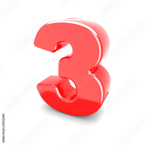 © santypan, Fototapeta premium 3d red metal number 3 three isolated white background