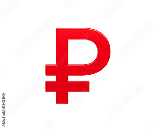 Obraz premium 3D Red Russian Ruble symbol with a glossy surface, representing digital...