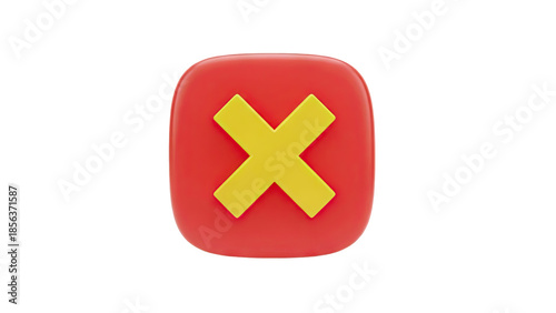 Obraz premium 3D Red X Mark Icon with Yellow Cross on transparent background
