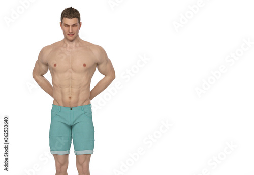 Fototapeta premium 3D Render : A portrait of mesomorph man pose standing in the studio