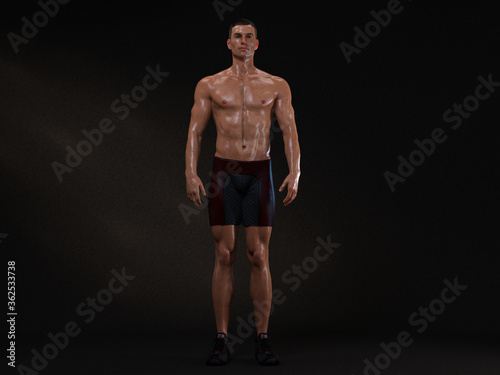 © Tritons, Fototapeta premium 3D Render : A portrait of mesomorph man pose standing in the studio