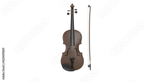 © Anh, Naklejka premium 3D Render a violin with a bow and a stick