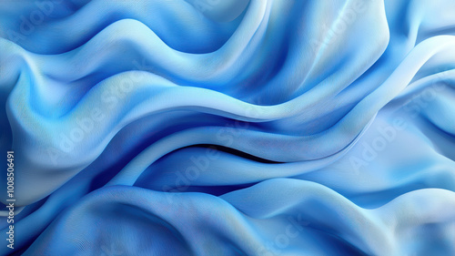 © N0X, Fototapeta premium 3d render, abstract background with folded textile ruffle, blue cloth macro, wavy fashion wallpaper