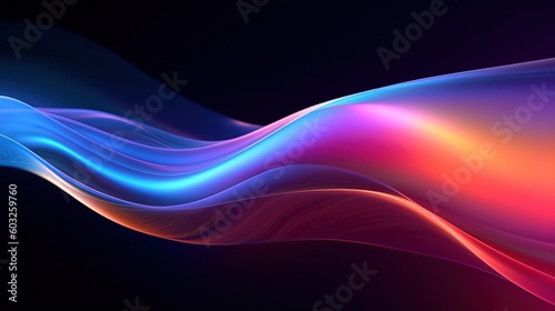 © Rudsaphon, Naklejka premium 3d render, abstract background with glowing waves.Generative Ai