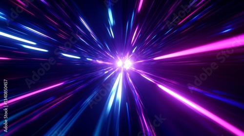 © EnelEva, Fototapeta premium 3D render, abstract background with neon light rays and speed lines on a dark backdrop