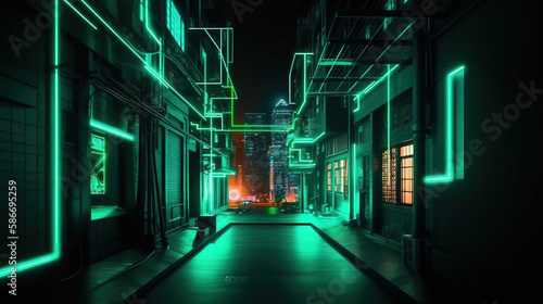 Fototapeta premium 3d render, abstract concept of the urban street at night. Generative Ai
