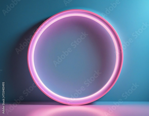 Obraz premium 3d render, abstract minimal background, pink blue neon light round frame with...