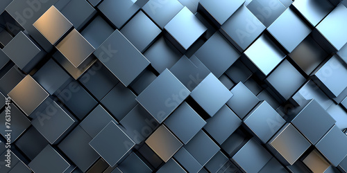 © Knut Hebstreit, Fototapeta premium 3D Render, Abstract Minimalist Blue Background With Square Geometric Shapes - A Group Of Blue Cubes