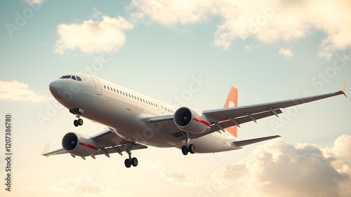 © Tark, Obraz premium 3D Render airplane in sky. low angle. Generative AI