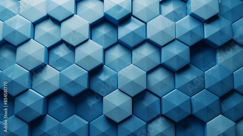 © SerPhoto, Obraz premium 3d render background of hexagon pattern in blue gradient.