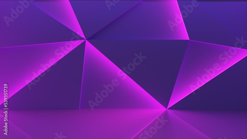 © sanchopancho, Obraz premium 3d render background with triangles and neon lights.