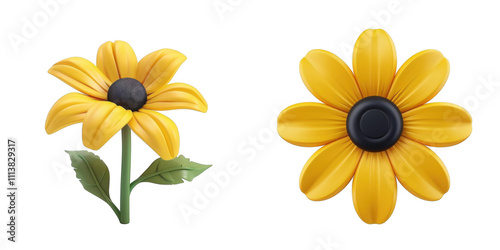 Fototapeta premium 3d render black-eyed Susan isolated on transparent background Cartoon...