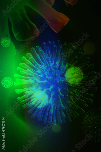 © meenkulathiamma, Obraz premium 3d render Corona virus microscopic view