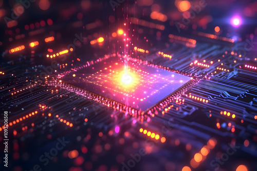 Obraz premium 3D Render CPU Microchip Circuit Board Technology Illustration