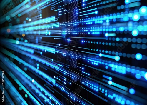 Obraz premium 3D Render: Glowing Blue Code on Dark Screen, Night Programming Scene