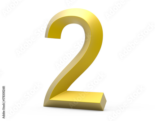 © JoyImage, Naklejka premium 3D render golden beveled number 2
