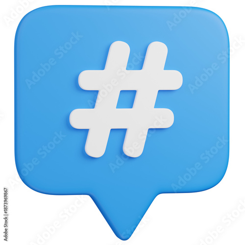 Obraz premium 3D render Hashtag Symbol in Blue Speech Bubble Icon