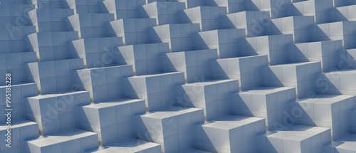 © yurakrasil, Obraz premium 3d render illustration The image is a close up of a white building with many white blocks